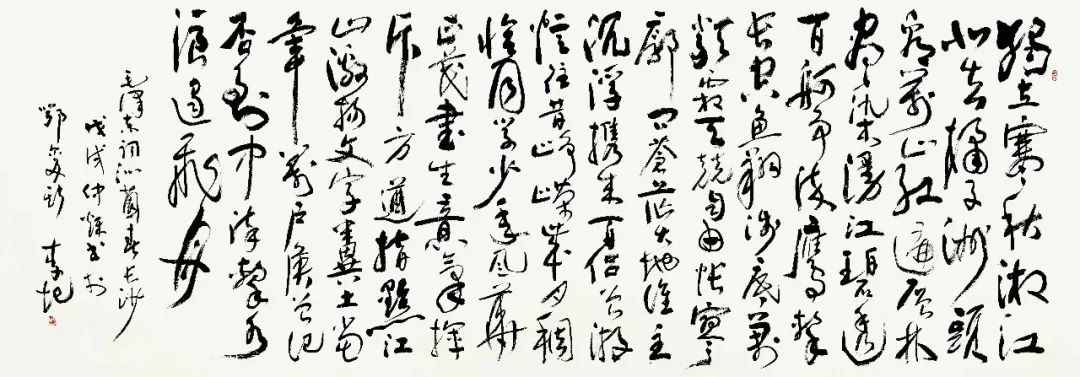 书法展的前言,采用了由丝路青年论坛副秘书长、丝路百科杂志社执行副总编宋广辉执笔的古体长赋,得到李圯本人和中国散文学会名誉会长、著名作家周明等诸多嘉宾的高度赞赏。这种体裁的会展前言,别开生面,在国内各类书画展中难得一见。