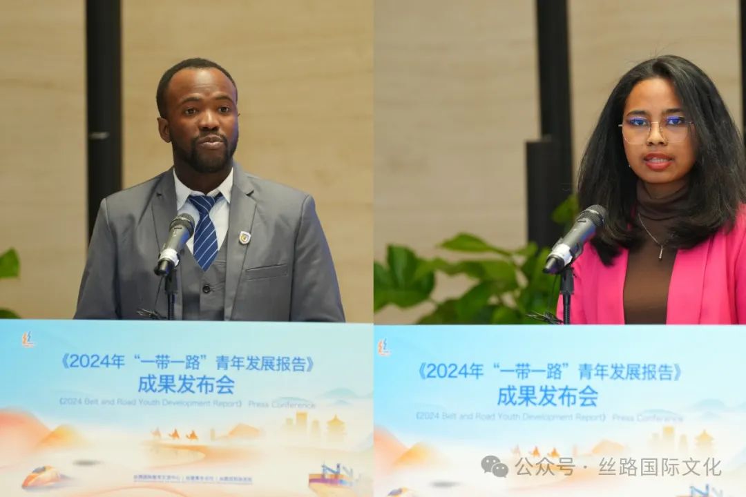 加纳青年代表奥杜罗、马达加斯加青年代表康托索阿在发言中畅谈自己阅读《报告》的体会。奥杜罗说:“这份报告不仅仅是一个文献,它是一座希望的灯塔,是未来的路线图。它强调了青年参与‘一带一路’倡议的重要性,突出了我们青年在推动创新、促进文化交流的贡献和可持续发展方面的潜力。标志着我们集体迈向一个更加互联、繁荣与和平的世界的新时代。这是合作力量的证明,也是共同未来的承诺。让我们共同接受这份报告带来的洞察和机遇,一起创造一个更美好的明天。”康托索阿说:“这份报告不仅承载了我们对美好未来的共同愿景,更如同一盏明灯,照亮了前行的道路,以其创新、完整且易于理解的内容,致力于构建一个紧密相连的丝绸之路青年社群。《报告》是对我们所有人的呼唤。它呼吁我们拥抱合作,共同塑造一个可持续的未来。让我们携手释放青年的无限潜能,激励和引领我们迈入一个充满希望与机遇的新时代。”